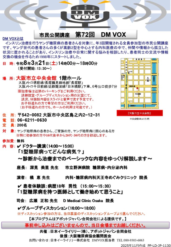 市民公開講座 第72回 DM VOXを3月21日(土)14:00から開催します。