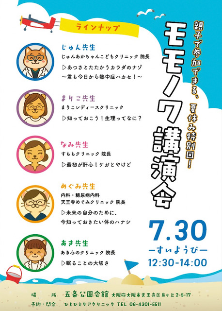 当日は、親子で参加できるセミナーを12時半から14時まで、クリニック近くの五条会館にて開催しております。